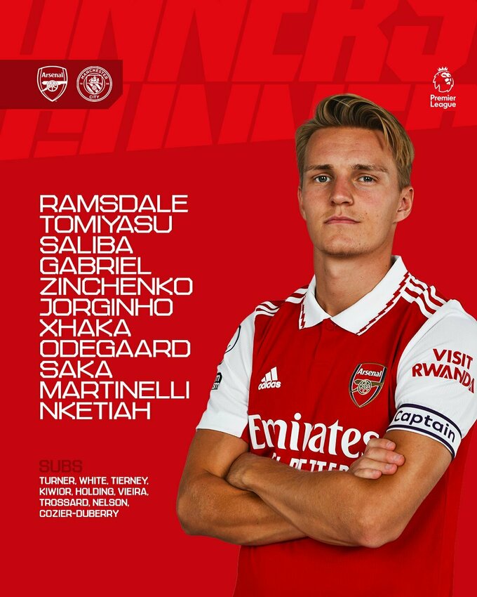 «Арсенал»: Рамсдейл – Зінченко, Габріель, Саліба, Томіясу (Б. Вайт, 83) – Джака (Вієйра, 83), Жоржиньйо, Едегор – Мартінеллі (Троссар, 75), Нкетіа, Сака.