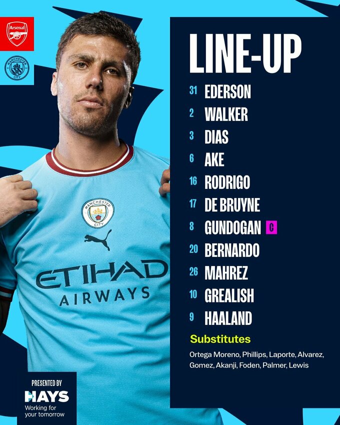 «Манчестер Сіті»: Едерсон – Аке, Діаш, Вокер – Гюндоган, Родрі – Гріліш (Фоден, 77), Б. Сілва, де Брюйне, Марез (Аканджі, 62) – Голанд.
