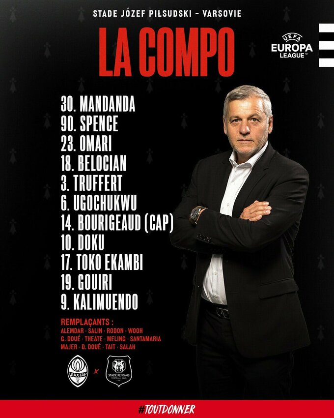 «Ренн»: Манданда – Трюффер, Белосьян, Омарі, Спенс – Токо Екамбі (Сантамарія, 78), Угочукву (Маєр, 78), Бурежо, Доку (Салах, 71) – Гуїрі (Д. Дуе, 71), Калімуендо (Мелінг, 86).