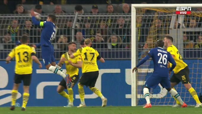 На 17-й хвилині матчу рахунок у грі було відкрито, проте гол був забитий рукою. «Відзначився» Тіаго Сілва після подачі Ріса Джеймса. За цей момент 38-річний бразилець отримав жовту картку.