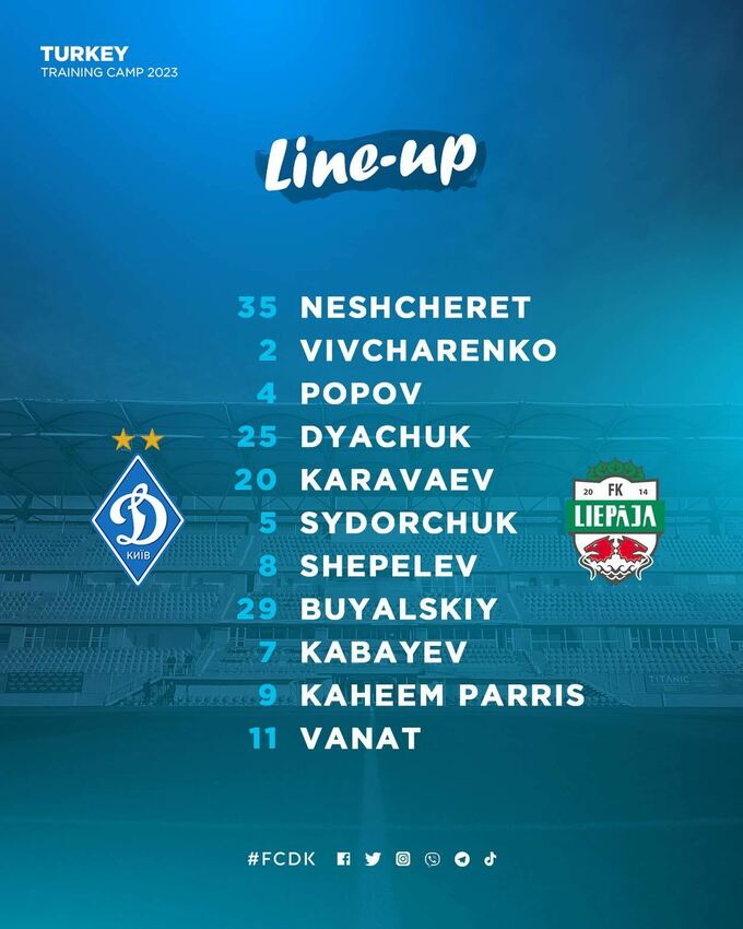 У четвер, 16-го лютого, відбудеться поєдинок товариського матчу, в якому змагатимуться «Динамо» Київ та латвійська «Лієпая». Матч пройде в Антальї (Туреччина), на полі стадіону Mardan Stadium, початок о 16:00.