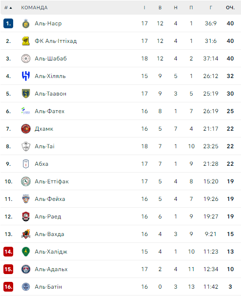 В результаті «Аль-Наср» переміг «Аль-Таавун» з рахунком 2:1, набрав 40 очок і вийшов у лідери чемпіонату.