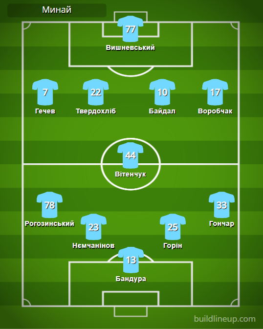 «Минай»: Бандура – Рогозинський (Мельник, 46), Нємчанінов, Горін, Гончар – Вітенчук – Гечев, Твердохліб (Паламар, 74), Байдал (Шишка, 46), Воробчак (Голуб, 84) – Вишневський (Колесник, 79).
