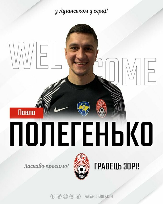 Луганська «Зоря» повідомила про підписання захисника Павла Полегенька. Деталі трансферу не повідомляються.