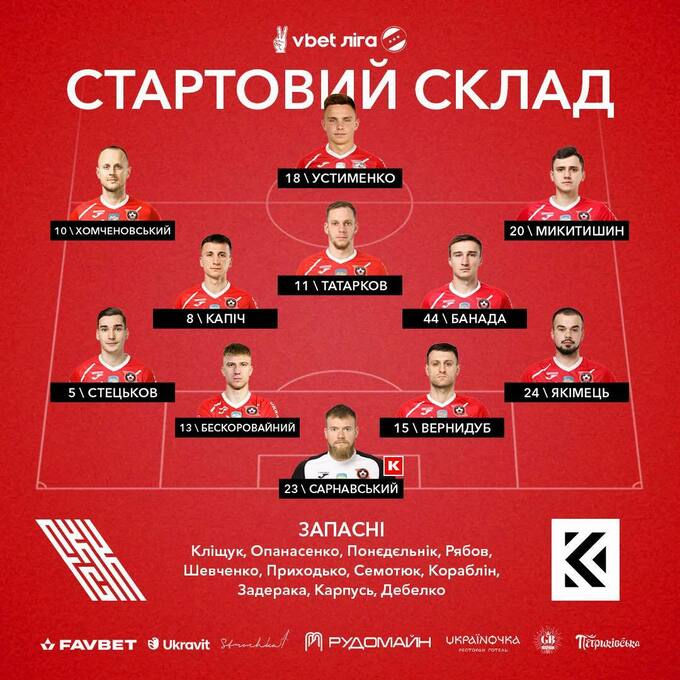 Запасні: Маханьков, Фесюн, Новак, Чорноморець, Золотов, Зозуля, Велетень.