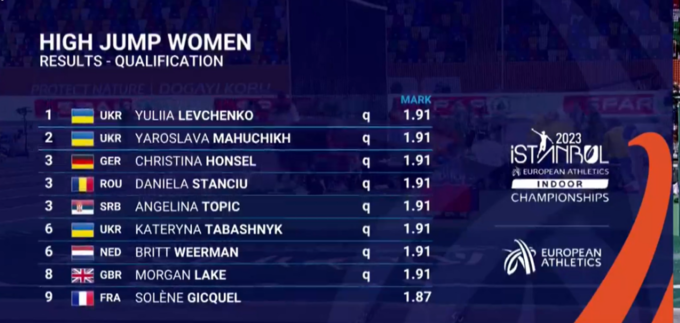 Левченко взяла висоту 1.91 м з першого разу, а Табашник – з другого.