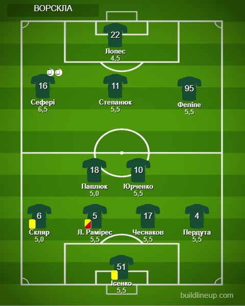 Заміни Ворскли: Хрипчук - 5,0, Яворський - 5,5.