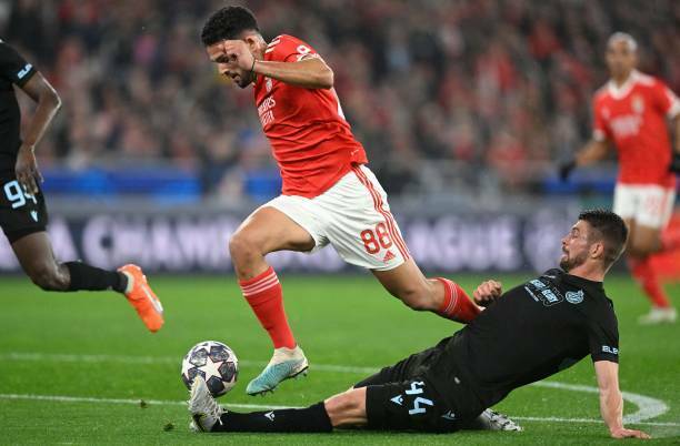 Два голи побували у воротах «Брюгге» наприкінці першого тайму, коли відзначилися Рафа Сілва та Гонсалу Рамуш. Після перерви Гонсалу Рамуш замкнув простріл із лівого флангу атаки та оформив дубль. Потім Жоау Маріу реалізував пенальті.