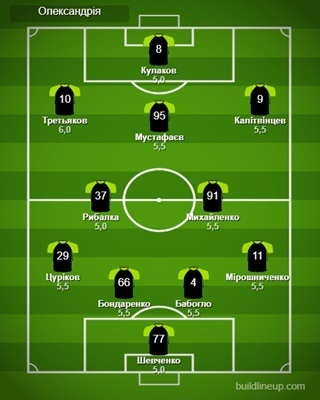 «Олександрія»: Шевченко – Бабогло, Кулаков (Кобзар, 63), Калітвінцев (Кожушко, 46), Третьяков, Мірошніченко, Цуріков, Рибалка (Ковалець, 46), Бондаренко, Михайленко (Сігеєв, 63), Мустафаєв (В.Волошин, 85).