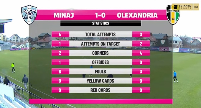Гравці Міная роблять спробу за спробою вирівнювати співвідношення сил на полі за рахунок контратак. Це їм не завжди вдається. Гості тримають дуже високу оборону та випади перекривають майже на початку.