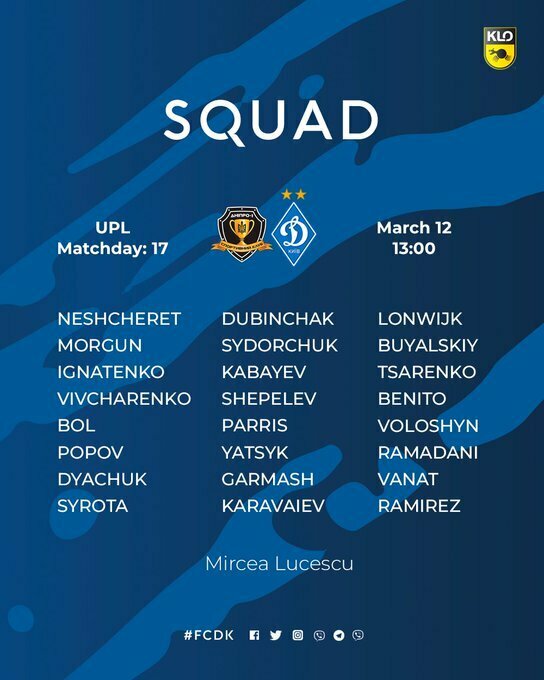 Київське «Динамо» прибуло до Ужгорода на матч 17-го туру української Прем'єр-ліги з «Дніпром-1», який відбудеться у неділю, 12 березня, початок – о 13:00 за київським часом.