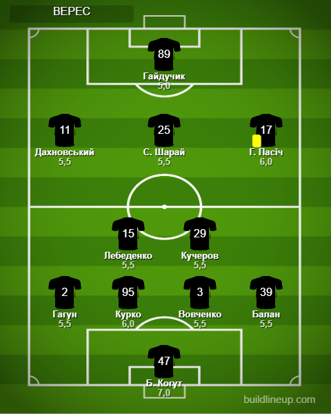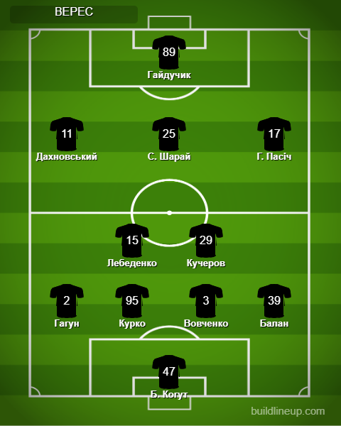 «Верес»: Б. Когут - Балан, Курко, Вовченко, Гагун - Лебеденко, Кучеров (Шух, 69) - Г. Пасіч, С. Шарай (Блізніченко, 75), Дахновський (В. Шарай, 75) - Гайдучик (М. Шестаков, 63).