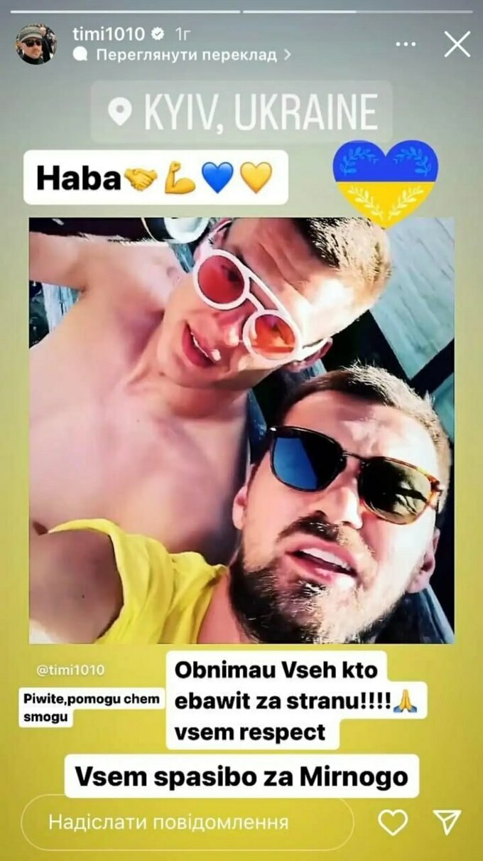 «Обіймаю всіх, хто ї**шить за країну! Усім респект. Всім дякую. Пишіть, допоможу чим зможу».