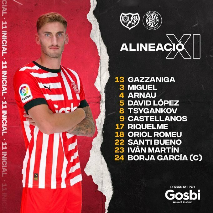 О 17:15 стартує матч чемпіонату Іспанії між «Райо Вальєкано» та «Жироною», а у стартовому складі гостей вийде український хавбек Віктор Циганков.