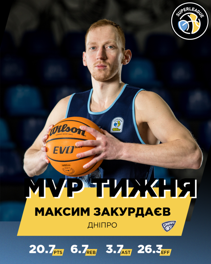 Найкращим гравцем тижня став захисник «Дніпра» Максим Закурдаєв. Він допоміг своїй команді здобути три перемоги у трьох матчах – проти «Прикарпаття-Говерли», «Старого Луцька» та «Черкаських Мавп».