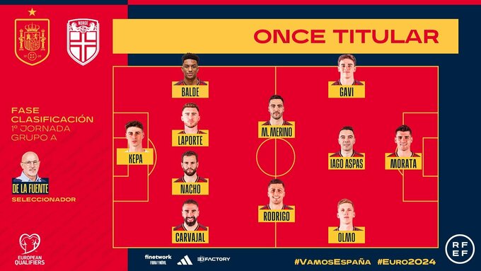 Іспанія: Аррісабалага – Бальде, Лапорт, Начо, Карвахаль – Меріно (Руїс, 81), Родрі – Гаві (Себальйос, 57), Аспас (Оярсабаль, 58), Ольмо (Піно, 67) – Мората (Хоселу, 81).