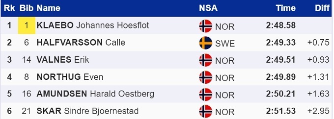 Переможцем чоловічого спринту класикою на заключному етапі Кубка світу в фінському Лахті став Йоханнес Клебо. У фіналі норвежець випередив шведа Калле Халварссона і партнера по команді Еріка Вальнеша.