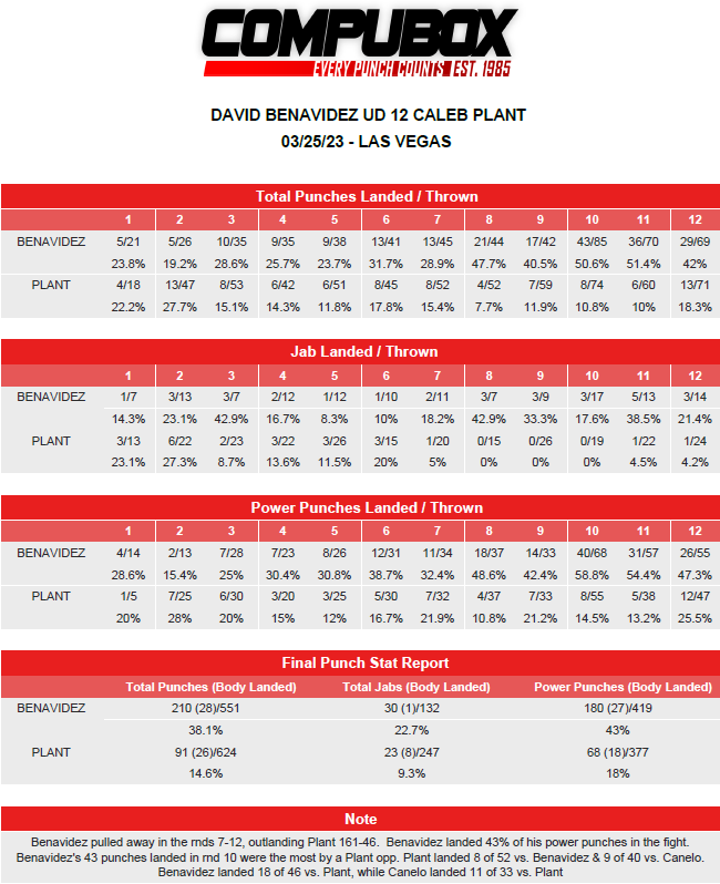 Девід Бенавідес – Калеб Плант. Статистика ударів