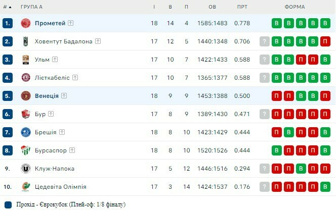Посіли перше місце в групі. Прометей у Ризі переміг Венецію