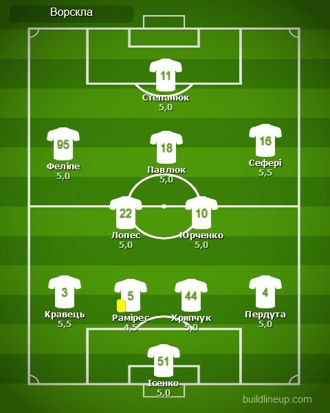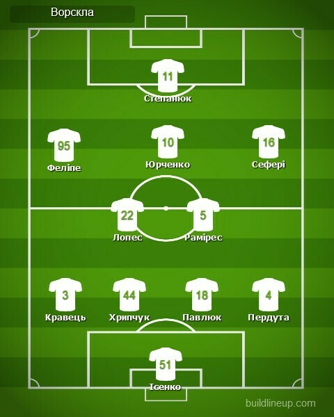 «Ворскла»: Ісенко, Кравець, Хрипчук (Скляр, 76), Л.Рамірес (Бацула, 46), Пердута, Юрченко, Сефері, Павлюк, Лопес (Кане, 58), Феліпе (Олійник, 64), Степанюк (Челядін, 46)