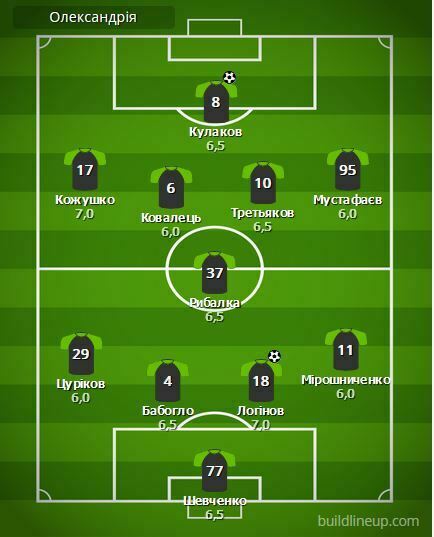 Заміни «Олександрії»: Калитвинцев – 6,0; Михайленко – 5,5; Копина – 5,5; Сігеєв – 5,5; Кобзар – 5,5.
