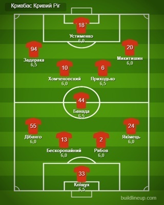 «Кривбас»: Кліщук – Якімець, Бескоровайний, Дібанго, Рябов, Банада, Приходько (Луньов, 76), Хомченовський, Микитишин (Понєдєльнік, 70), Задерака (Стецьков, 90+1), Устименко.