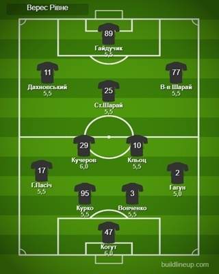 Запасні «Вереса»: Лебеденко – 5,5, Блізніченко – 5,5, Шестаков – б/о.