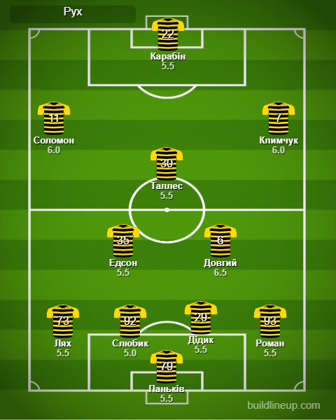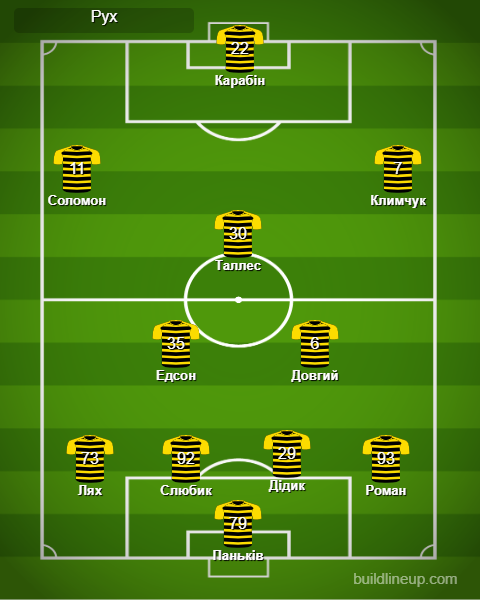 «Рух»: Паньків – Роман, Дідик, Слюбик, Лях, Довгий, Едсон (Притула, 61), Карабін (Руніч, 61), Таллес, Соломон, Климчук.