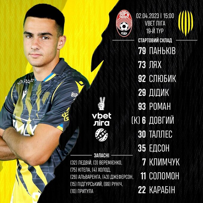 Запас: Жилкін, Кучерук, Гулько, Мороховець, Нагнойний, Бурда.