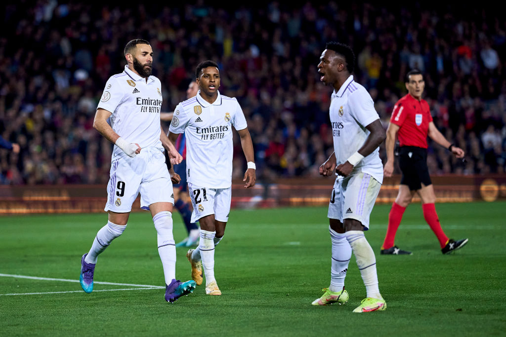 На початку другої половини зустрічі становище каталонців ще більше погіршилося. Модрич змістився з флангу в центр і зробив поперечну передачу на Бензема, який завдав ще одного результативного удару у ворота «Барселони». Господарі одразу ж активізувалися, і моменти біля воріт «Реала» не змусили на себе довго чекати. З ударом Бальде у стрибку впорався Куртуа, Араухо після індивідуальних дій не влучив у ворота. А потім сталася чергова шокова подія для «блаугранас». Кессьє у штрафному майданчику наступив на ногу Вінісіусу, і арбітр вказав на 11-тиметрову позначку. Пенальті холоднокровним ударом реалізував Бензема.