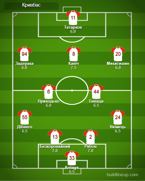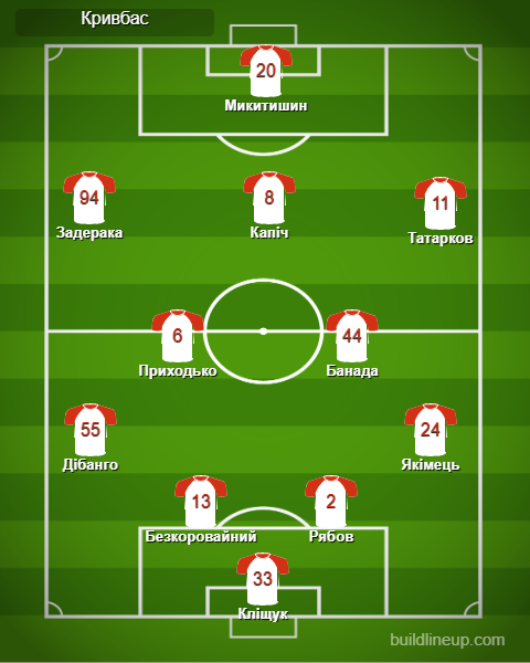 «Кривбас»: Кліщук – Якимець, Рябов, Безкоровайний, Дібанго, Банада, Приходько, Задерака (Опанасенко, 90+4), Капіч (Стецьков, 88), Татарков (Луньов, 71), Микитишин (Понєдєльнік, 46).