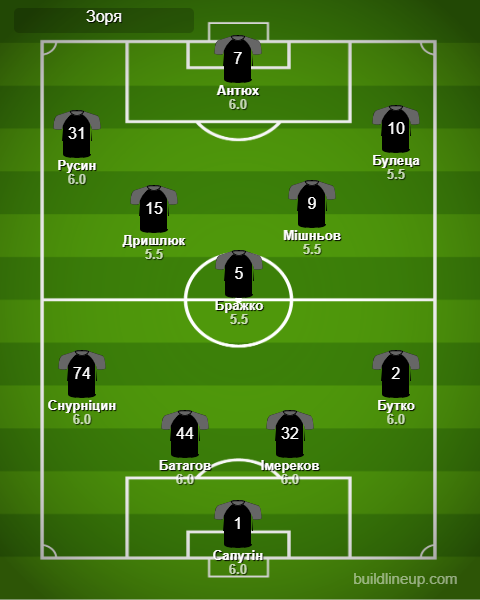Заміни «Зорі»: Погорілий - 5.5, Шахов - 5.5, Вантух - 6, Полегенько - б/о, Хахльов - б/о.