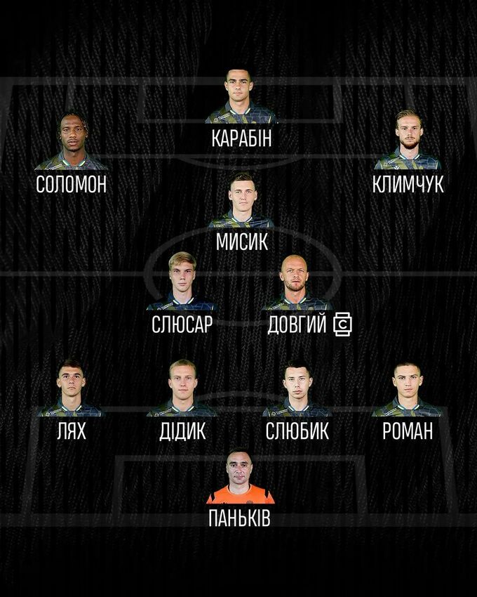 «Рух»: Паньків – Лях, Дідик, Слюбик, Роман – Довгий, Слюсар (Притула, 68) – Соломон-Отабор, Мисик (Едсон, 58), Климчук – Карабін (Руніч, 46).