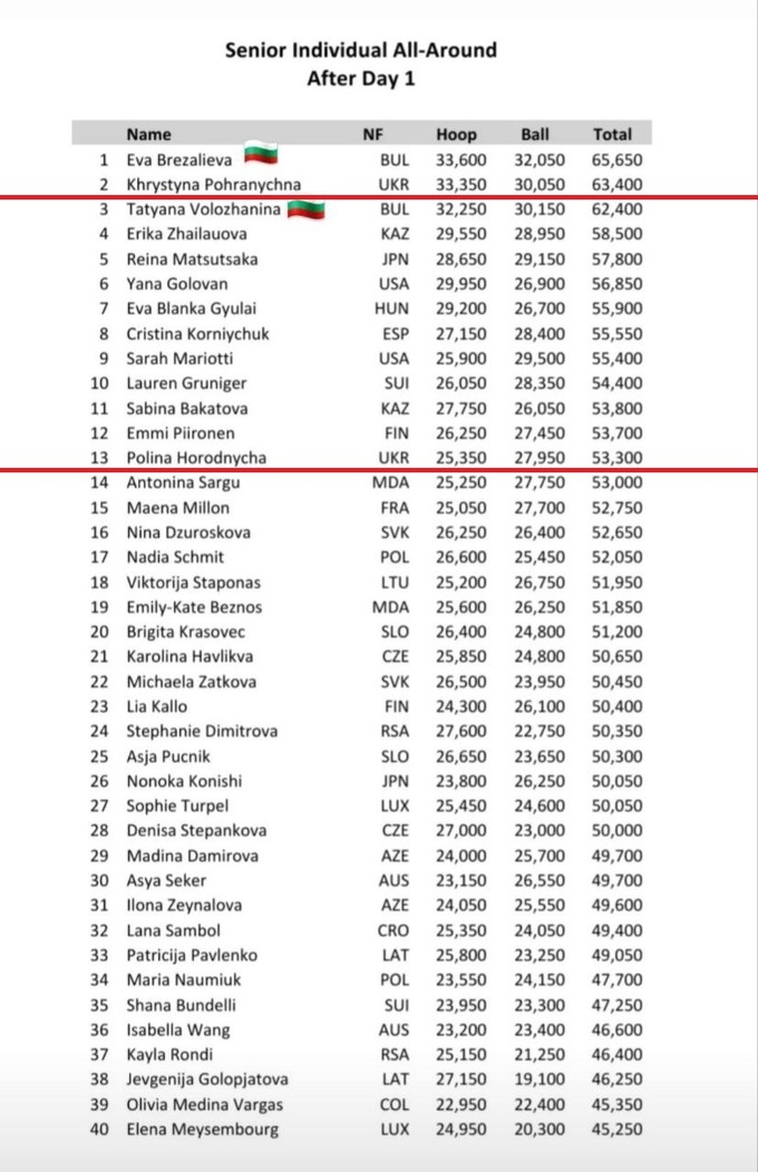 У п'ятницю відбувся перший змагальний день на Міжнародному турнірі з художньої гімнастики в болгарській Софії. Україну на цьому старті представляють Христина Погранична і Поліна Городнича, а також юніорська збірна команда у групових вправах.