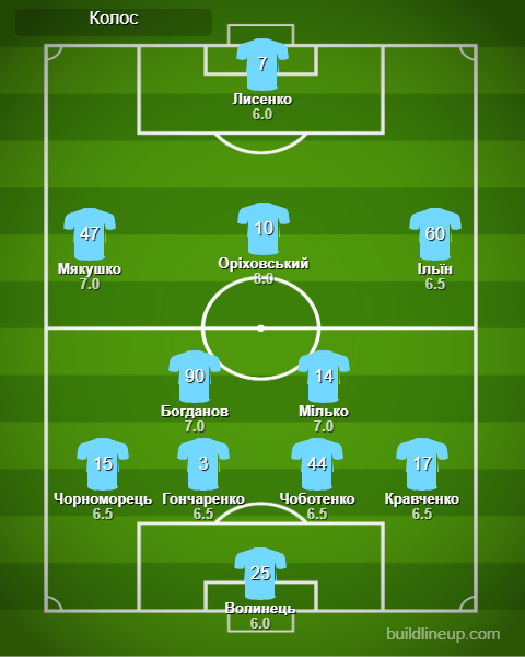 Заміни «Колоса»: Безбородько - 7, Болбат - 6, Смирний - 6, Велетень - б/о, Криворучко - б/о.