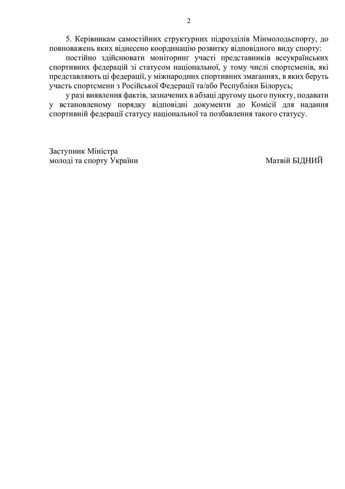 Указ, датований 12 квітня, підписав не міністр молоді та спорту Вадим Гутцайт, а заступник міністра молоді та спорту України Матвій Бідний.