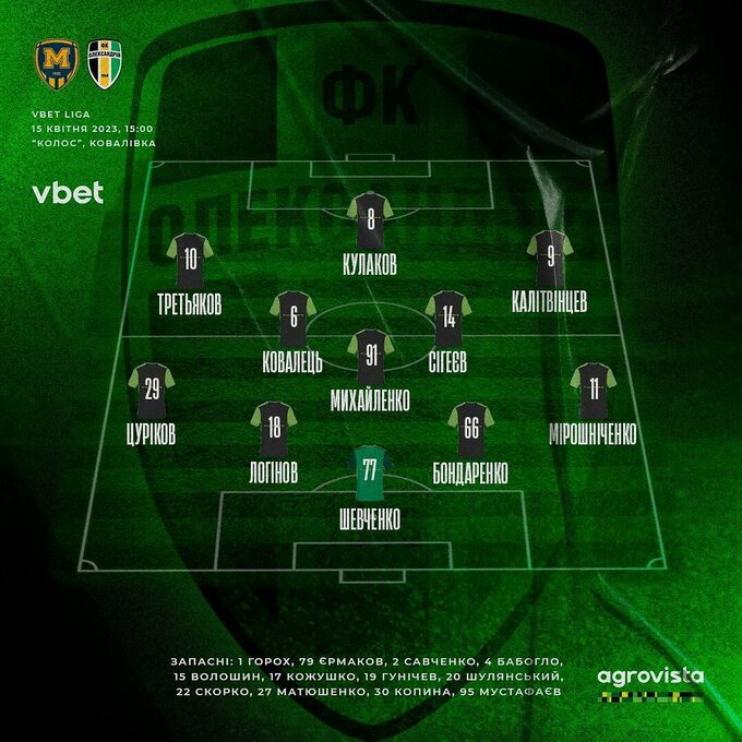В складі Олександрії Мустафаєв вийшов замість Михайленка, Кожушко замість Цурікова.