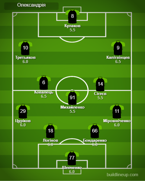 Заміни «Олександрії»: Бабогло - 6.0, Кожушко - 6.0, Мустафаєв - 5.5, Волошин - 6.0, Шулянський - б/о.