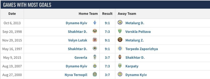Попередні матчі УПЛ, у яких було забито 10 голів: