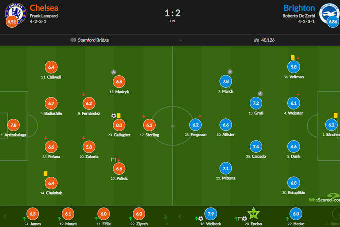 Оцінки WhoScored за матч Челсі – Брайтон – 1:2