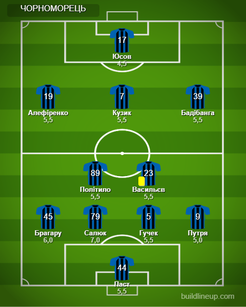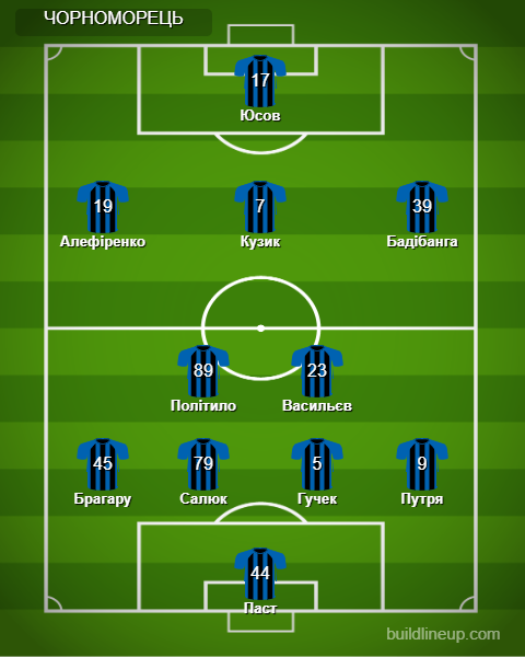 «Чорноморець»: Паст - Путря, Салюк, Гучек, Брагару - Васильєв, Політило (Єрмаков, 46) - Бадібанга (Авагімян, 75), Кузик, Алефіренко - Юсов (Войтіховський, 40).
