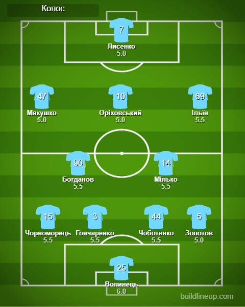 Заміни «Колоса»: Болбат - 5.5, Попов - 5.5, Ісаєнко - 5,5.