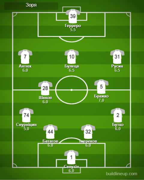 Заміни «Зорі»: Дришлюк - 6.0, Вантух - 6.0, Мишньов - 5.5, Вантух - 5.5, Полегенько - 5.5, Хахльов - 5.5.