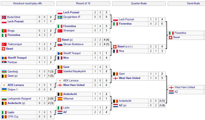 У півфіналах «Фіорентина» зіграє з «Базелем», «Вест Хем» – з АЗ Алкмар