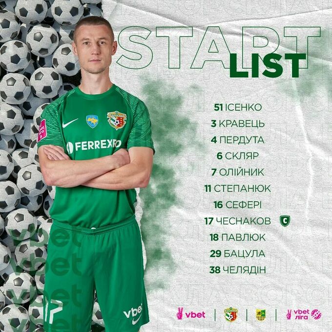 Запасні: Домолега, Ященко, Крупський, Рамірес, Яворський, Кане, Чеснаков, Кулаковський, Нестеренко.