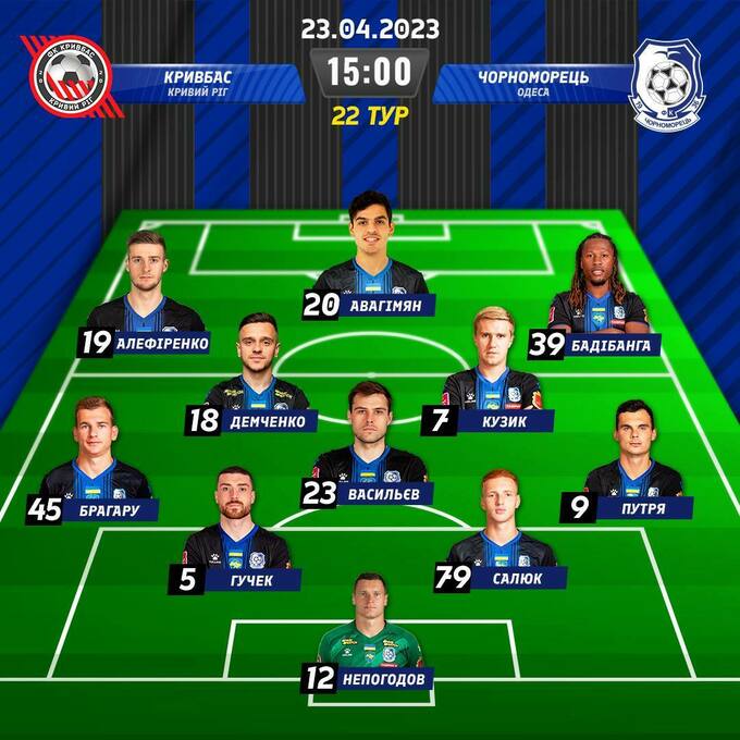 У неділю, 23 квітня, відбудеться поєдинок 22-го туру Української Прем'єр-ліги, в якому змагатимуться криворізький «Кривбас» та одеський «Чорноморець». Матч пройде у Кривому Розі, на полі стадіону «Гірник», початок о 15:00.