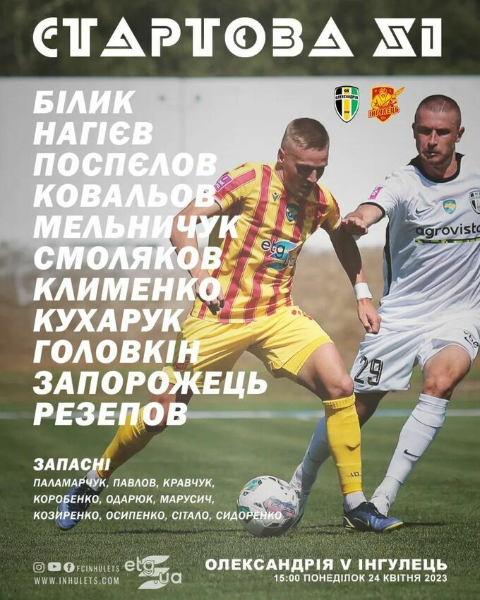 У понеділок, 24-го квітня, відбудеться поєдинок 22-го туру Української Прем'єр-ліги, в якому змагатимуться «Олександрія» та петровський «Інгулець». Матч пройде в Олександрії, на полі стадіону КСК «Ніка», початок о 15:00.