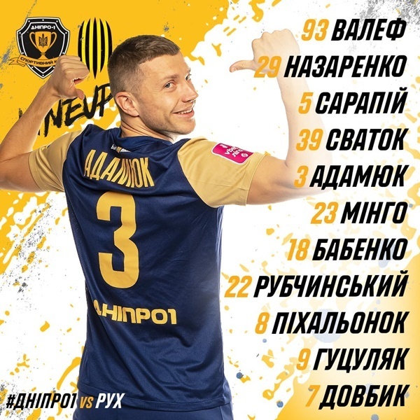 «Дніпро-1»: Макс Валеф – Назаренко (Матарріта, 61), Сарапій, Сваток, Адамюк (Хайнер, 80), Бланко (Когут, 80), Бабенко (Танковський, 72), Рубчинський (Пеглоу, 61), Піхальонок, Гуцуляк, Довбик.