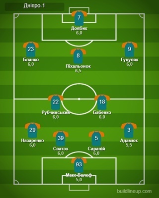 Заміни «Днепра-1»: Матарріта – 6,0, Пеглоу – 5,5, Танковський – б/о, Хайнер – б/о, Когут – 6,5.