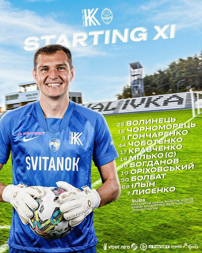 Запасні: Маханьков, Золотов, Зозуля, Ємець, Криворучко.